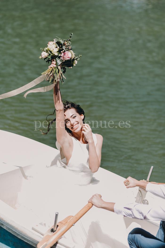 Organizar un elopement en barco en España es una forma muy original de celebrar una boda íntima. La decoración floral, el ramo de novia, el fotógrafo profesional y la organización del evento están incluidos para que la experiencia sea completa y sin preocupaciones.