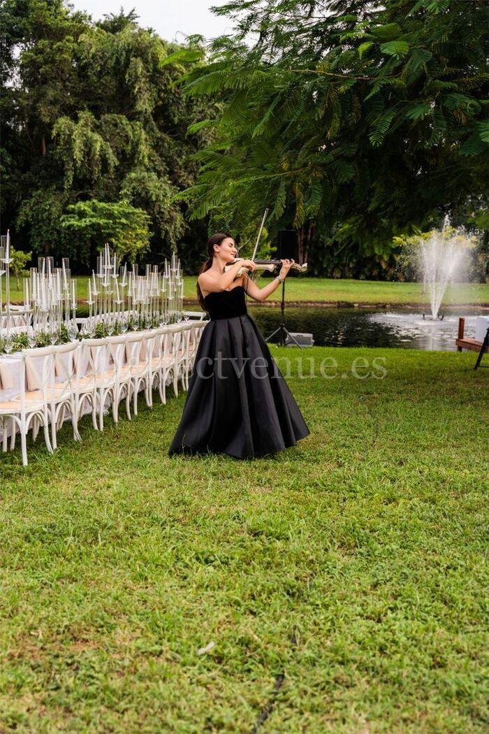 Una de las claves que hace tan especial esta propuesta es la actuación en directo del violinista, que no se limita a tocar, sino que se convierte en parte activa del evento. Puede moverse entre los invitados, interactuar con el entorno, improvisar según el ánimo del momento o sorprender con solos inesperados. Esa cercanía transforma la experiencia musical en algo vivo, íntimo y muy personal.