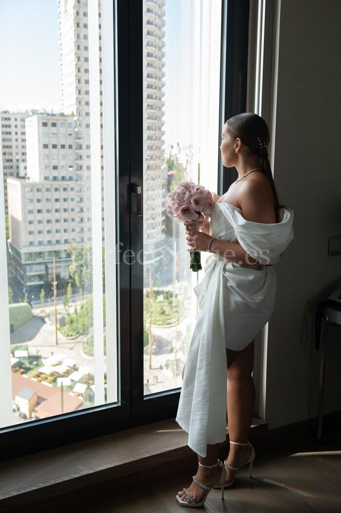 Este elopement en Madrid se puede celebrar en una azotea con vistas a la ciudad, en un hotel elegante o en un espacio privado con arquitectura urbana y diseño contemporáneo. Es una opción ideal para parejas que buscan una boda íntima diferente, moderna y muy especial.