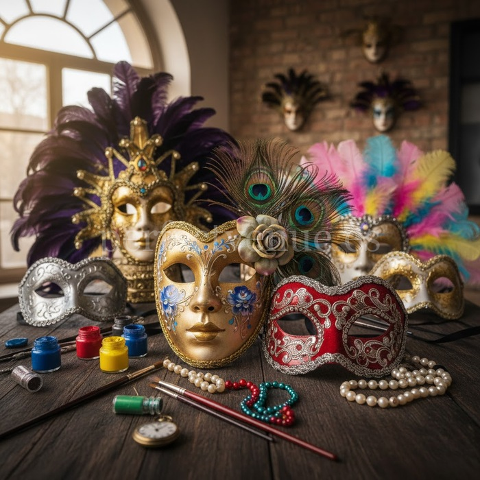From the very first moment, the custom mask workshop sparks curiosity and the desire to create. Each participant receives a mask base and a wide variety of decorative materials to choose from. Vibrant colored feathers, acrylic paints, glitter, sparkling gems, and rhinestones allow for endless combinations. No prior experience is necessary: during the workshop, we teach the basic techniques step by step to decorate and personalize each mask in a simple and fun way.
