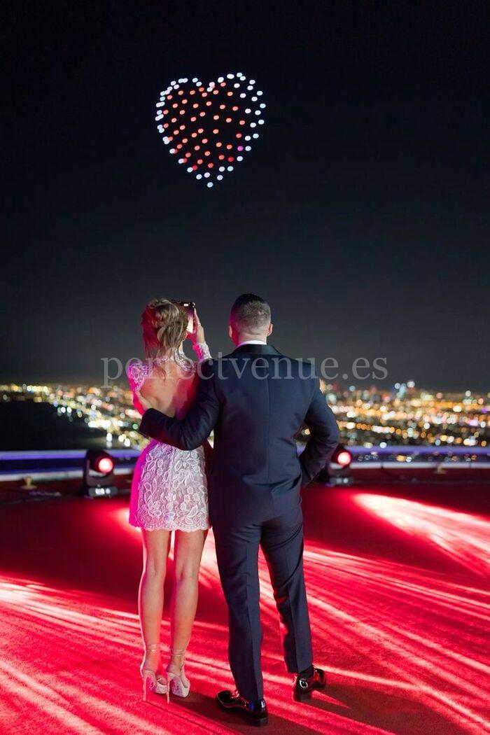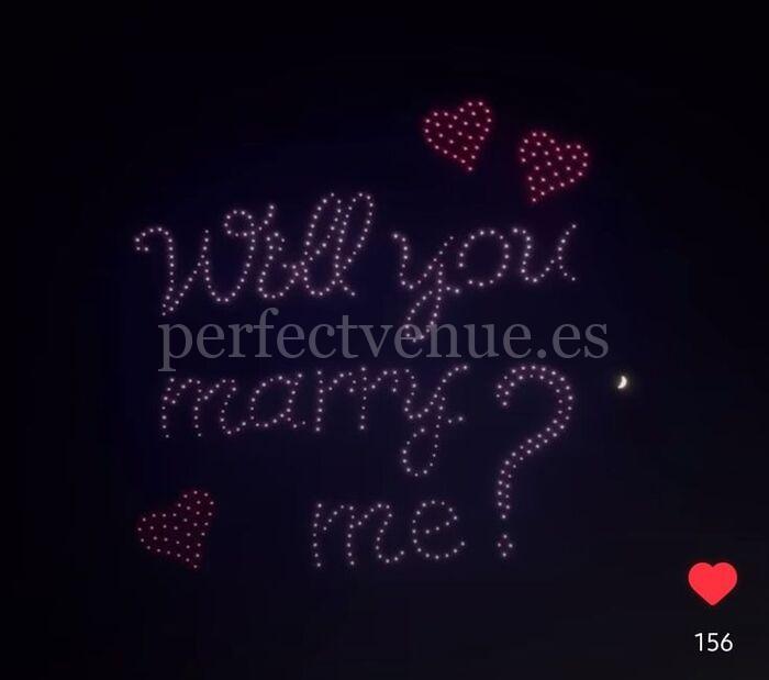 If you are looking for a truly spectacular marriage proposal, this drone marriage proposal is one of the most impressive and original options. A unique way to surprise, where the sky becomes the stage for your proposal.