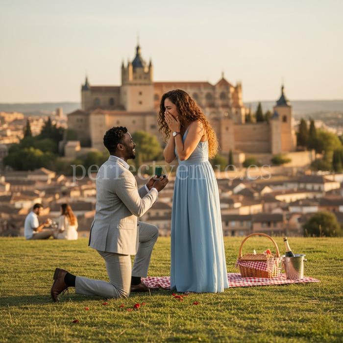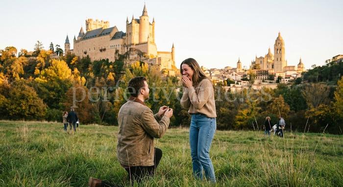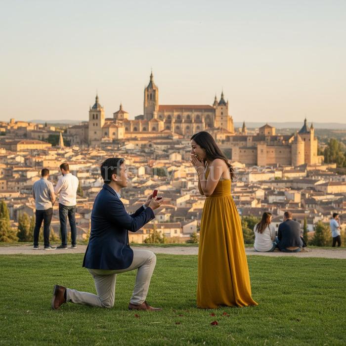 A marriage proposal in Segovia at the Mirador de la Pradera de San Marcos is one of the most romantic and spectacular options for a marriage proposal in the city. Segovia, with its historical heritage and distinctive landscape, offers unique settings, and few places are as impressive as this viewpoint, which offers one of the most iconic views of the Alcázar. The combination of nature, history, and tranquility makes this location the perfect setting for an unforgettable proposal.