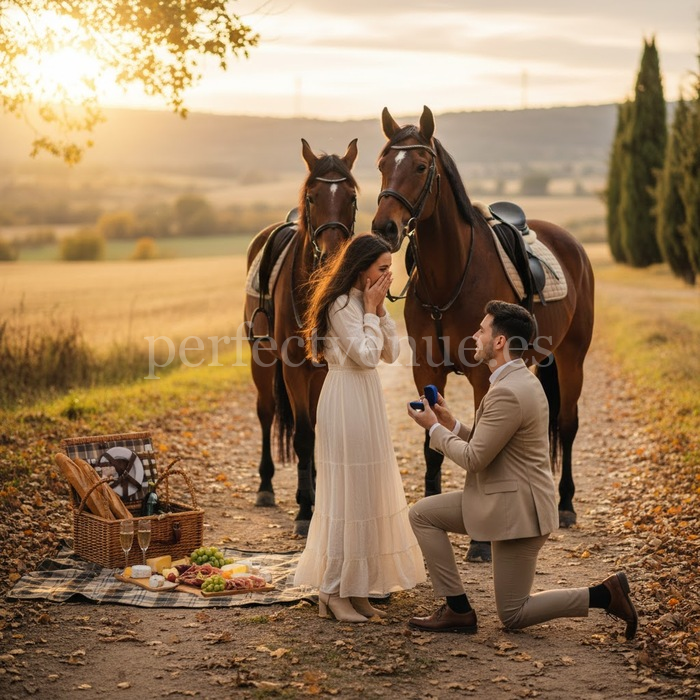You can also add a bouquet of flowers, incorporate additional decorations such as illuminated letters, hearts, rose petals, or even a small floral arch to frame the proposal location. Every detail contributes to creating an even more magical and personalized atmosphere! For all these reasons, a marriage proposal with a horseback ride in Madrid combines adventure, romance, and exclusivity. It’s ideal for couples who love nature, are looking for something different from the traditional, and want to experience a private and meaningful event. Without a doubt, it’s a spectacular way to begin the journey to “I do.”