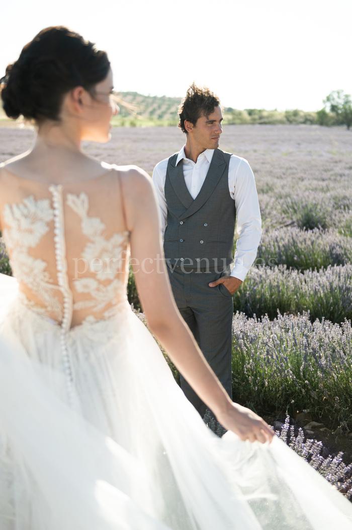 Роскошный элопмент в поле лаванды в Мадриде: камерная свадьба среди лаванды