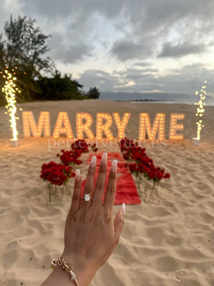 Каждая деталь будет продумана до мелочей, чтобы волновать и удивлять. Это предложение руки и сердца в Малаге с надписью MARRY ME из светящихся букв идеально подходит для тех, кто мечтает о романтической, элегантной и эффектной помолвке в неповторимой обстановке.