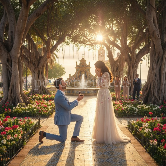 Впечатления начинаются с прогулки по мощеным дорожкам в окружении природы и украшенных типичной андалузской плиткой скамеек. В назначенном месте, вас будет ждать тщательно подобранная обстановка и элегантный букет цветов в качестве уникального подарка по случаю помолвки.