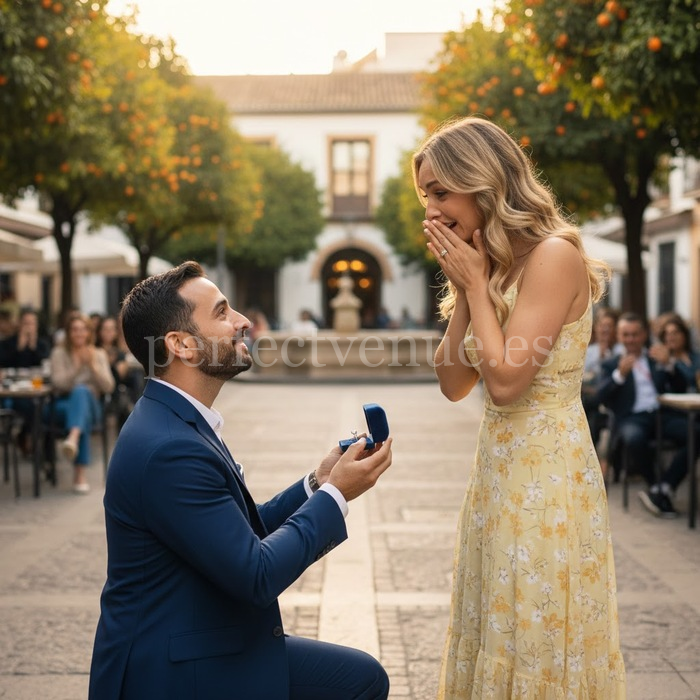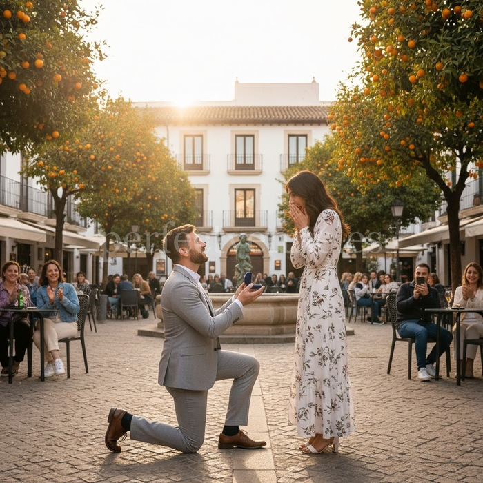 Кроме того, вы можете персонализировать мероприятие, воспользовавшись такими дополнительными услугами, как живая музыка или видеосъемка, чтобы запечатеть все происходящее. Кульминационный момент наступает, когда под сенью апельсиновых деревьев, на фоне яркой атмосферы площади, задаётся главный вопрос. Сочетание традиций, романтики и средиземноморского очарования делает это предложение руки и сердца волшебным и незабываемым.