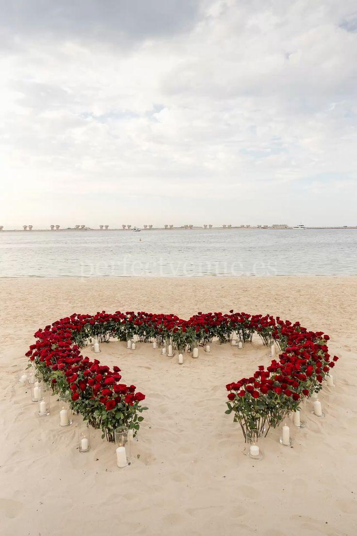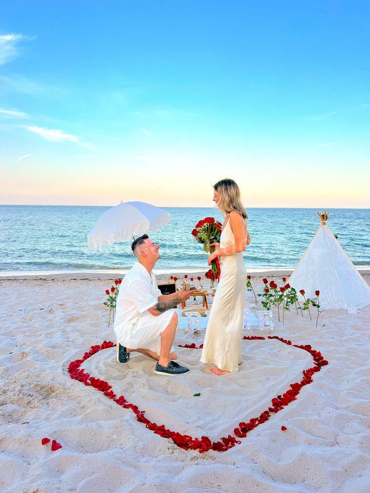 Что включено в предложение руки и сердца в Марбелье с сердцем из лепестков роз на пляже:
