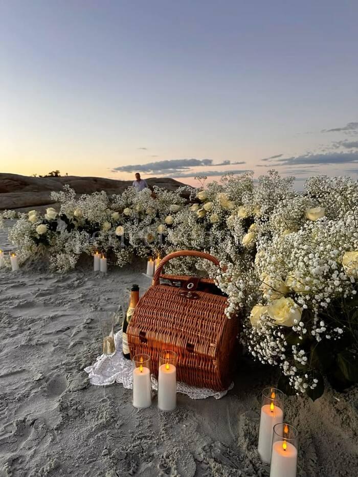 Кульминационный момент наступает, когда на фоне этого уютного пикника у моря, в лучах заката, ласкающего горизонт, задаётся главный вопрос. Простота, красота обстановки и внимание к деталям делают предложение руки и сердца незабываемым.
