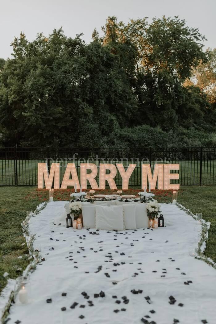 Наша услуга буквы «Marry Me» в Мадриде включает в себя транспортировку, сборку и разборку, чтобы клиенты могли наслаждаться моментом, не беспокоясь о технических деталях. Наша команда специалистов позаботится о размещении букв в выбранном вами месте, будь то сад, терраса, ресторан или отдельная комната, и позаботится о том, чтобы всё работало идеально до самого важного момента.