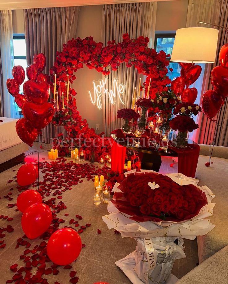 Буквы «Выходи за меня» будут в центре внимания, создавая идеальный фон для момента предложения. Чтобы вы ни о чем не беспокоились, мы возьмем на себя все заботы по организации и планированию предложения в гостиничном номере в Барселоне, гарантируя, что каждая деталь будет идеальной.